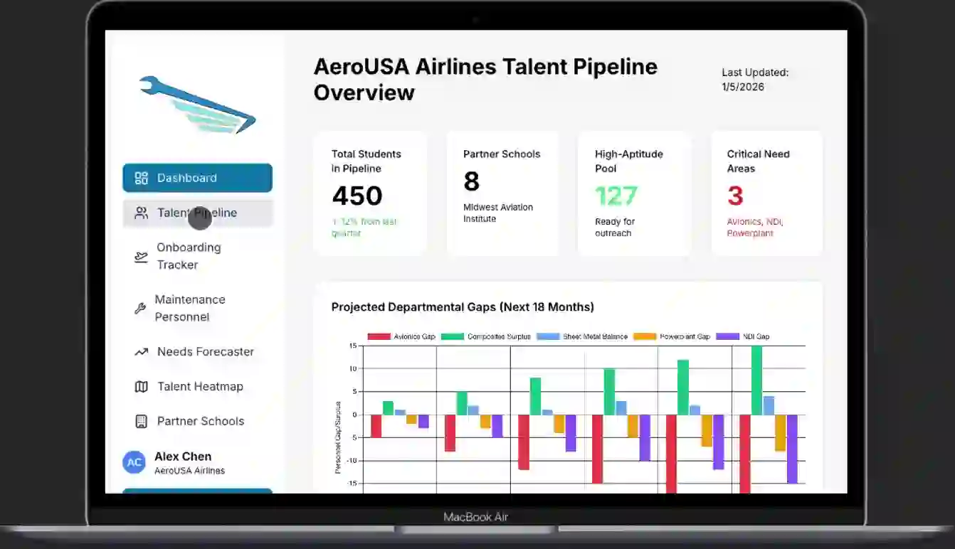 Enterprise analytics and credentialing for schools and employers to track outcomes, cohorts, and readiness.