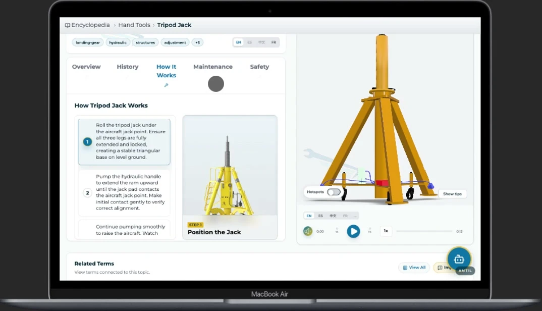 Searchable 3D database of aircraft systems, components, and procedures. Rotate, inspect, and learn with interactive models and audio pronunciations.
